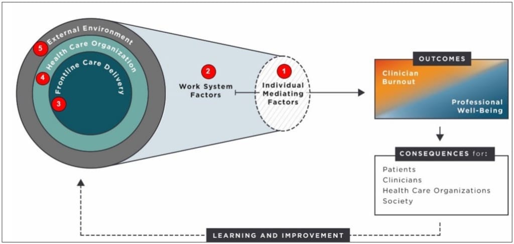 Against Clinician Burnout: A Systems Approach to Professional Well-Being” developed a systems model of health care worker well-being that remains relevant and important to understanding the interplay among: