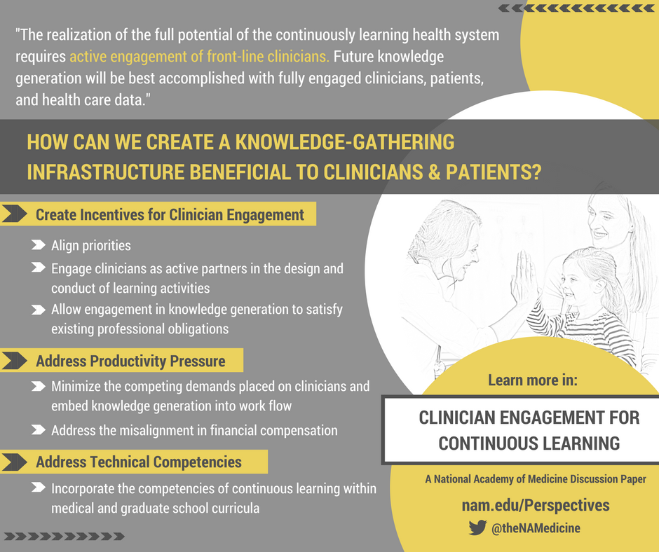 - @theNAMedicine presents 3 action priorities to transform how clinicians engage with the learning health system: http://bit.ly/2ld5Opp
