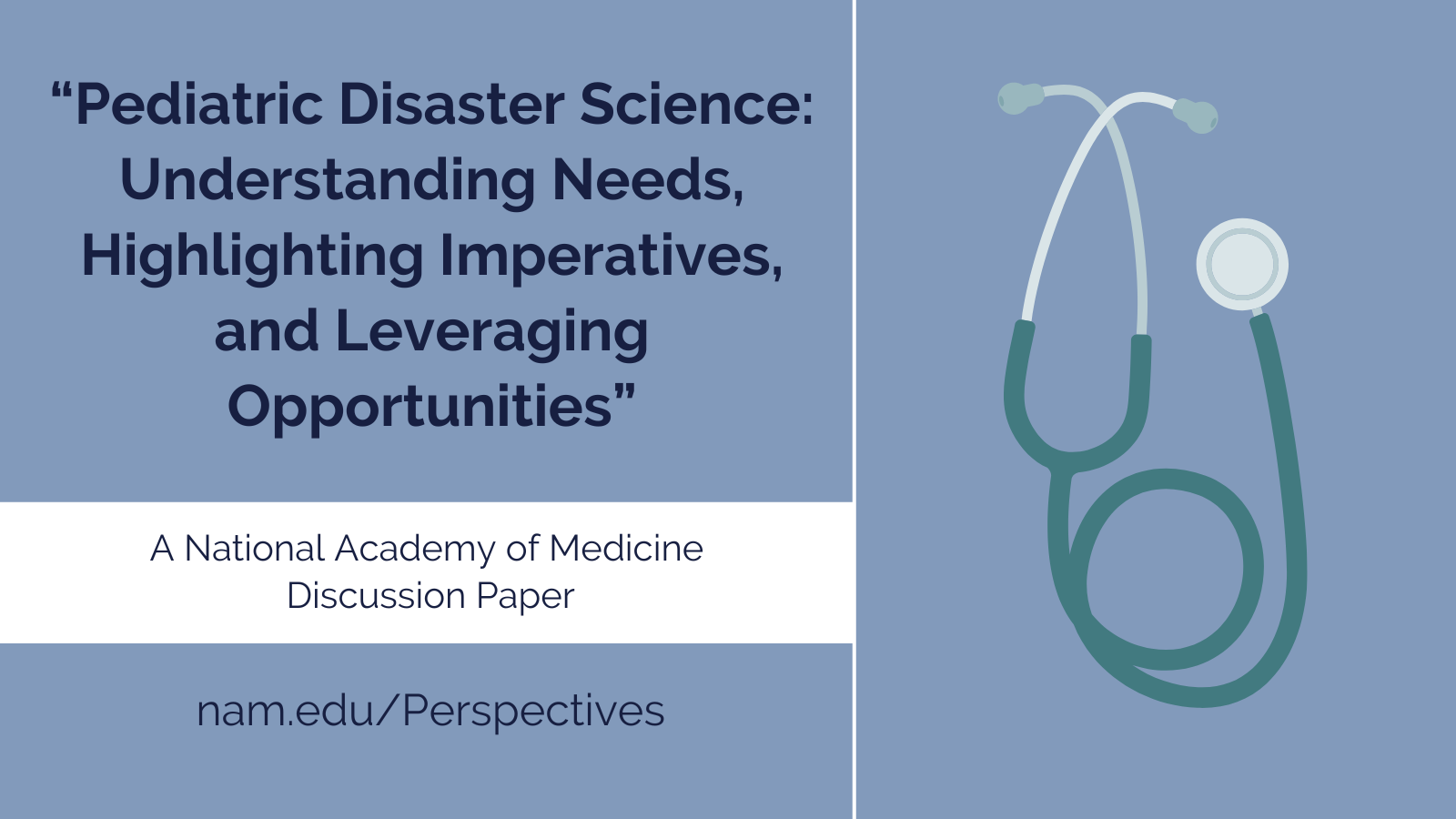 Building on the urgent need and substantial momentum of these and other activities to prioritize children’s health and protection before, during, and after disasters, a landmark Symposium on Pediatric Disaster Science was hosted August 1st and 2nd, 2022, by the Action Collaborative for Disaster Research under the National Academies of Sciences, Engineering, and Medicine (NASEM) Forum on Medical and Public Health Preparedness for Disasters and Emergencies (NASEM, 2024a; 2024b). The Symposium’s overarching goal was to harmonize the collective understanding of the state of disaster science focused on United States (US) pediatric populations, and to identify gaps, opportunities, and strategies for future scientific endeavors. For the purpose of the Symposium, the term “disaster” included natural and human-induced events, pandemics, and mass casualty incidents that outstrip the capacity of local, health care, community, and/or governmental resources. All efforts were made to consider the diversity of the pediatric population (i.e., individuals below age 21) across all sociodemographic backgrounds; physical and intellectual abilities; access, functional and health care needs; and language literacy and preferences.