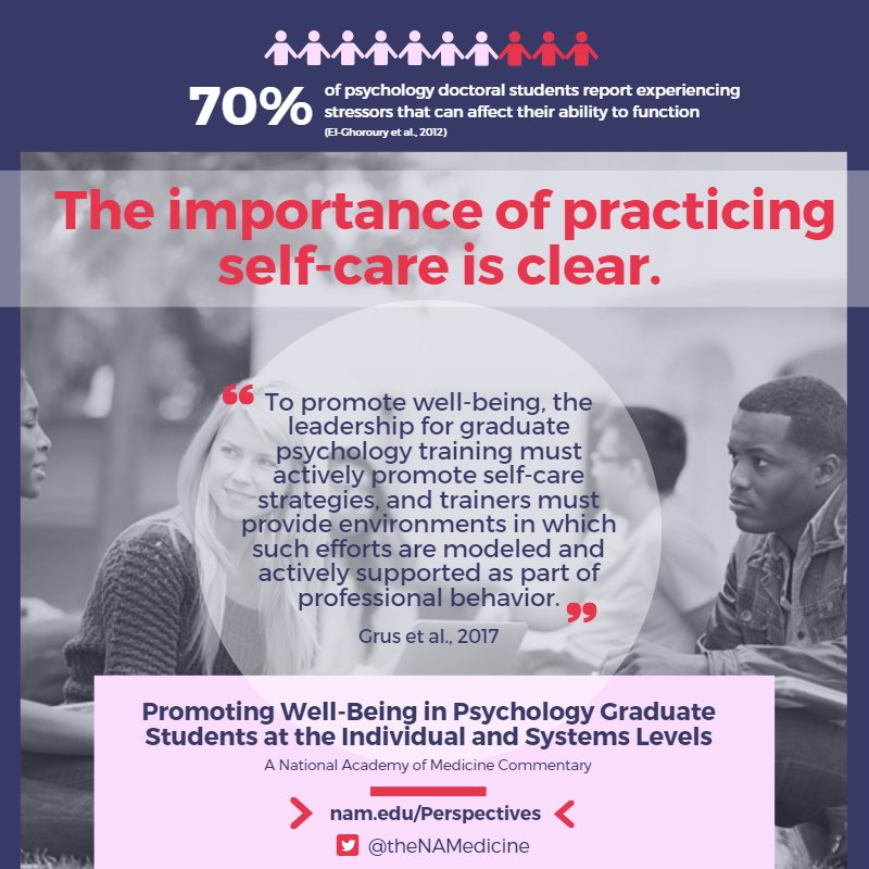 Grus, C. L., K. Bodner, J. Kallaugher, S. H. Lease, R. Schwartz-Mette, D. Shen-Miller, and N. Kaslow. 2017. Promoting Well-Being in Psychology Graduate Students at the Individual and Systems Levels. NAM Perspectives. Commentary, National Academy of Medicine, Washington, DC. https://doi.org/10.31478/201703h