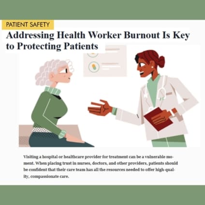 The Collaborative’s article, “Addressing Health Worker Burnout Is Key to Protecting Patients,” in the patient safety issue outlines clear, actionable steps to prioritize safety and compassion in health care—beginning with protecting the people who care for us, with an ultimate focus on quality care for all.